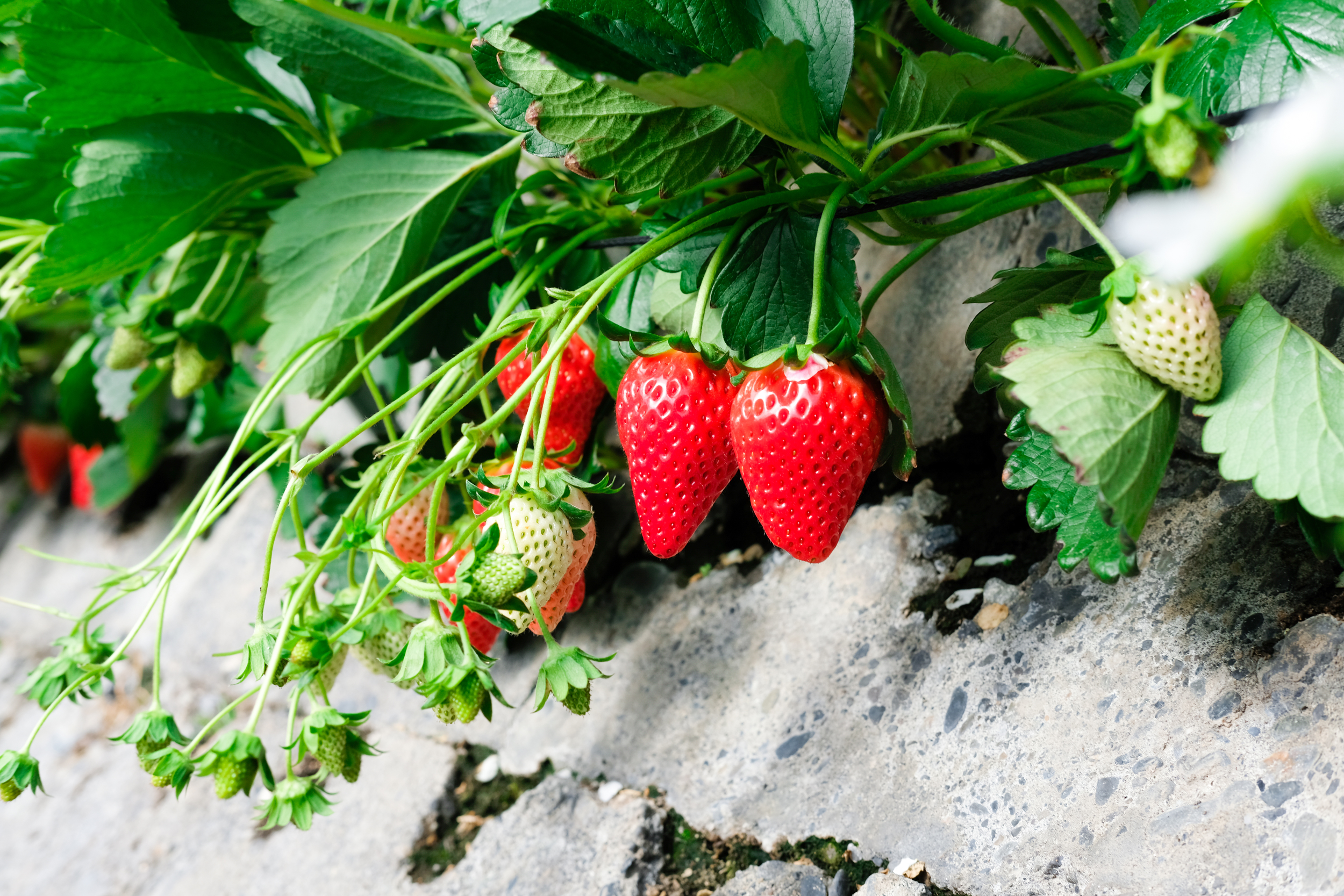 石垣いちご、栽培中(いちご狩りは閉園中です)