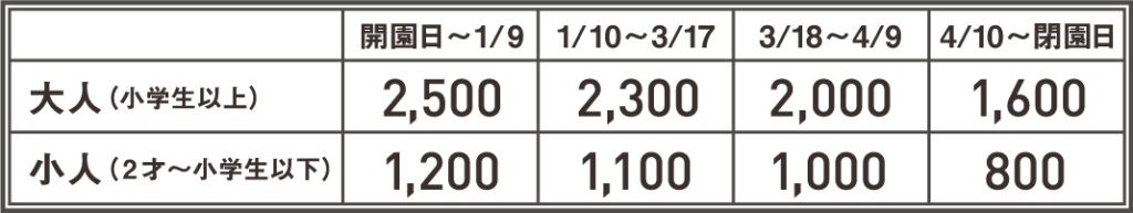 2023年度 久能山石垣いちご狩り 料金表